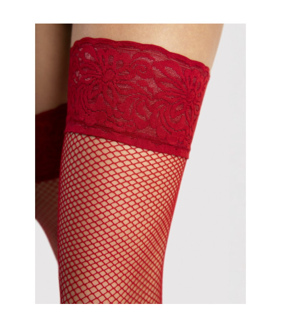 Éveillez la passion avec nos bas autofixants rouges en dentelle et résille. Une séduction irrésistible pour...