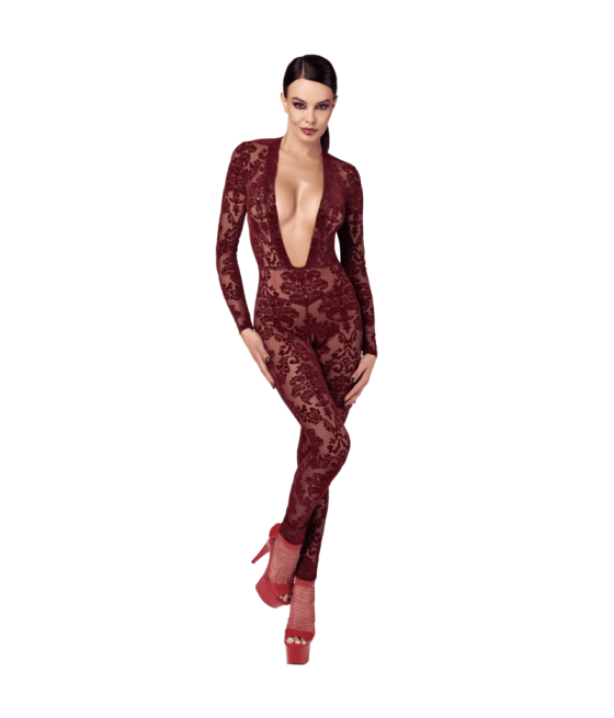 Enfilez cette combinaison Bodystocking Rouge Sensuel - une pièce de lingerie sexy par Obsessive....