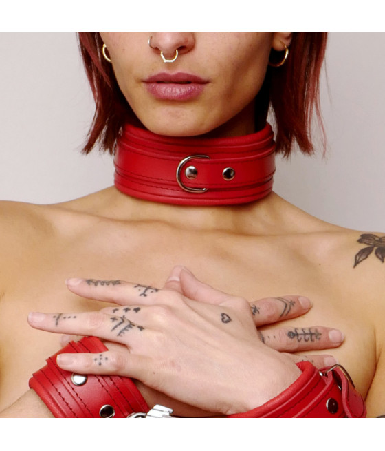 Choker minerve en cuir épais Rouge de la marque The Sinners est distribué par votre grossiste BDSM Tendance...