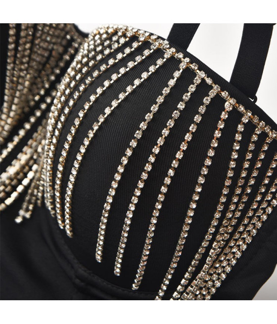 Top Bustier Sexy Noir parsemé de Pierre de strass doré