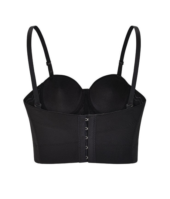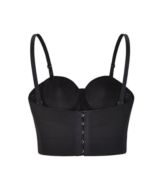 Top Bustier Sexy Noir avec Pierre de strass Argenté